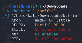 Binary, script for exploitation, and PDF of solutionI solved this challenge using static analysis. For my solution to be effective, it's imperative that no canary is detected, as canaries would stop buffer overflow attacks. Furthermore, it is necessary that PIE (Position Independent Executable) is disabled, as an enabled PIE ensures that functions are not loaded into the same addresses each time, making it difficult to jump to different functions with a buffer overflow. I checked both requirements with checksec.