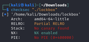 Binary, script for exploitation, and PDF of solutionI solved this challenge using static and dynamic analysis. For my solution to be effective, it's imperative that no canary is detected, as canaries would stop buffer overflow attacks. Furthermore, it is necessary that PIE (Position Independent Executable) is disabled, as an enabled PIE ensures that functions are not loaded into the same addresses each time, making it difficult to jump to different functions with a buffer overflow. I checked both requirements with checksec.